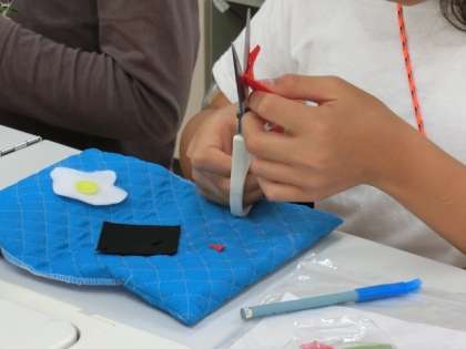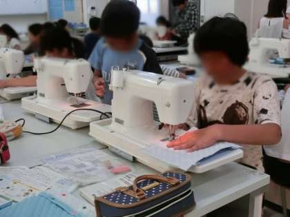 家庭科で「ブックカバー」作りに取り組んでいます。