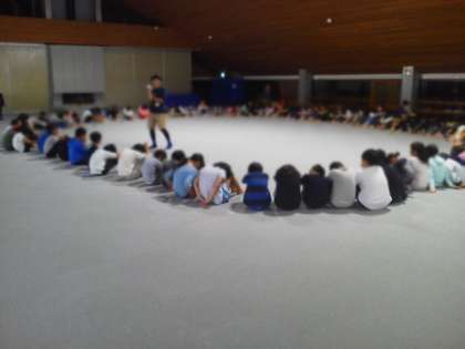 さあ、室内レクリエーションです。ものすごい盛り上がりです。ジェスチャーゲーム、全員ハンカチ落とし、じゃんけん列車と続いています。