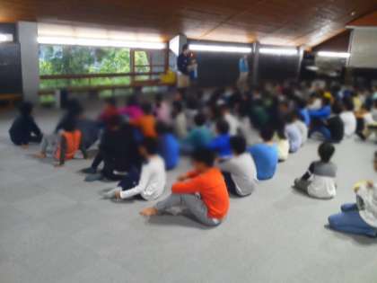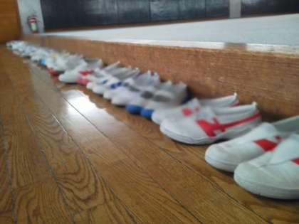川場移動教室3日目、霧雨の朝を迎えました。起床時刻まで各部屋ぐっすりと眠っていました。朝の会にも全員決められた時刻までに集まりました。きちんと揃えられた上履きに子どもたちの成長を感じます。