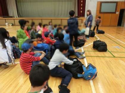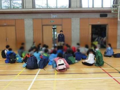閉園式は、体育館で行いました。子どもたちは、たくさんのことを発見し、たくさんのことを学んで帰ってきました。みんなで協力することや時間を守って行動することなど、これからの生活に活かしてていきましょう。