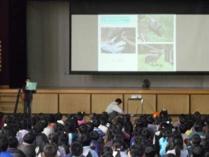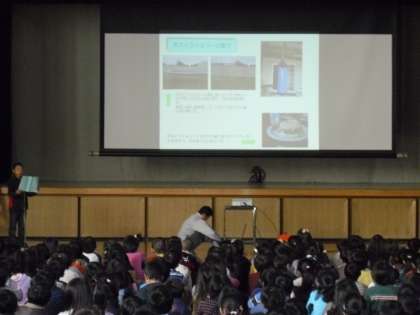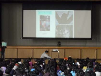 11月6日に帰国した、今年度の海外派遣の児童の報告会を、帰国した直後に1度行いましたが、本日、本人がパワーポイントでまためたものを朝会時に行いました。写真など交えての報告で、日本との食の違いや生活について、全校の児童に詳しく報告してくれました。