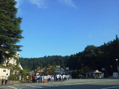 天気はとてもよいです。子どもたちは、少し眠そうですが元気です。
