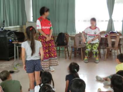 学校運営委員会主催の夏休みワクワクスクールの3回目は、1・2年生の「ジャンボ!! ケニア」。28人のお友達参加しました。