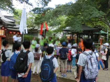 尾山台中学校、尾山台小学校、玉堤小学校の三校が翠と溪の学び舎の活動と夏の体験教室を兼ねてフィールドワークを行いました。玉堤からも3年生〜5年生のお友達が、尾山台小学校のお友達と一緒にグループを作り活動しました。