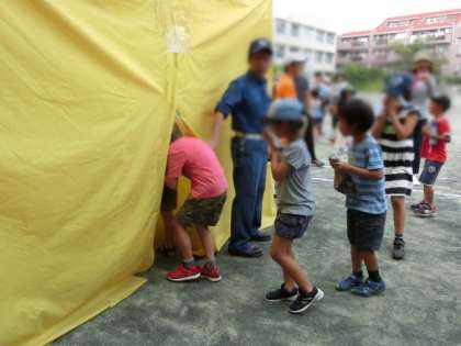 起震車体験、煙中訓練、倒れている人の運び方も経験しました。