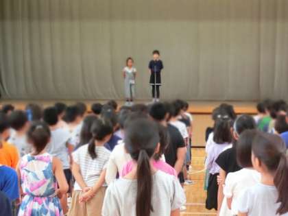 そして、児童代表として3年生の2人が2学期に頑張ることを発表しました。とても立派でした。子どもたちみんなが2学期の目標を達成できるよう先生方や主事さん方も気持ちを新たにしています。