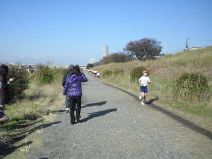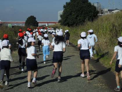 3・4年生は、1000メートルを、男子、女子別に走りました。男子の1位の記録は、4分10秒で、女子は4分30秒でした。みんな一生懸命に走りました。