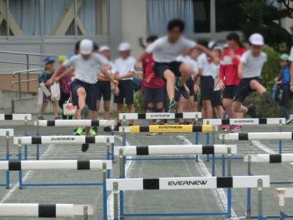 種目ごとのグループに分かれ、リーダーを中心に自分たちで準備し。練習をすすめています。他の学年の先生方も指導に参加しています。