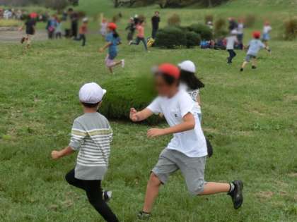 「だるまさんがころんだ」「鬼ごっこ」「しっぽ取り」など、班ごとに決めた遊びで走り回りました。