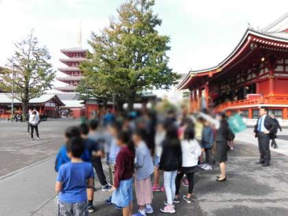 浅草では、雷門の迫力に圧倒される児童がたくさんいました。