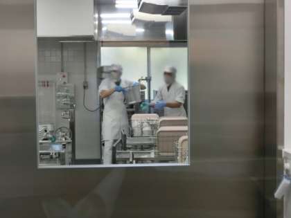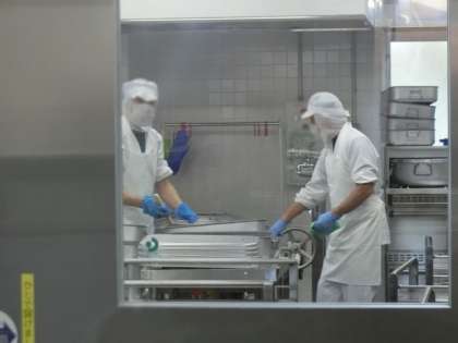 新しい給食室がオープンです。調理師さんたちも今日をめざして準備をすすめてくださっていました。