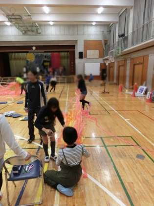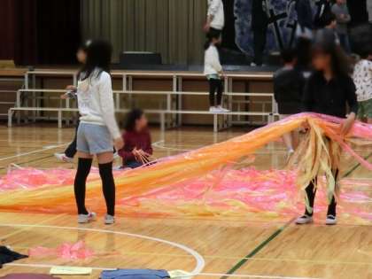 舞台のセットも仕上げに入っています。6年生も、自分たちで分担してつくり上げています。