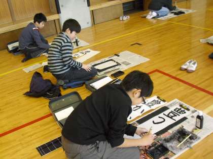 寒い日でしたが、3年生以上体育館で書き初めを行いました。1字1字丁寧に仕上げていました。