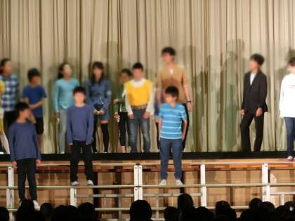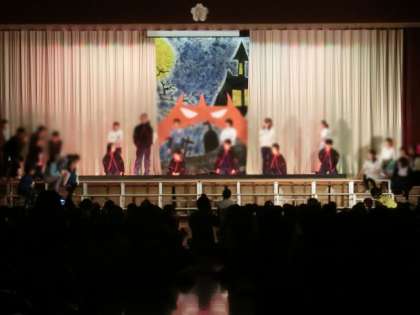 大トリは、6年生。期待にたがわぬ熱演です。背景画にもご注目ください。力作です。