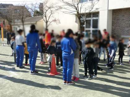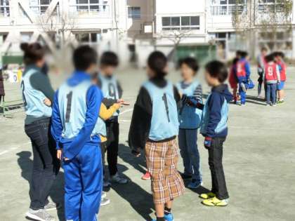 世田谷区スポーツ推進委員の皆様の指導の下、スポーツ鬼ごっこも始まりました。低学年と高学年に分かれ、中学校の先輩たちがリーダーになってゲームを楽しみます。