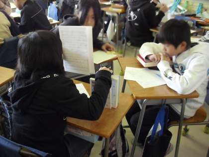 6年生は、お薦めの本の紹介をして、読んでみたい本を見つける学習をしていました。