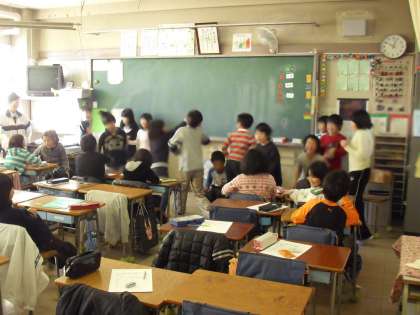 3年生の学級で、朝の会に歌を歌い、踊って楽しい雰囲気で生活をスタートさせています。