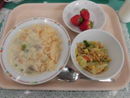 主な食材産地 米(新潟県)とり肉(岩手県)ベーコン(千葉県)にんじん(千葉県)玉ねぎ(北海道)ごぼう(青森県)きゅうり(宮崎県)キャベツ(愛知県)いちご(栃木県)