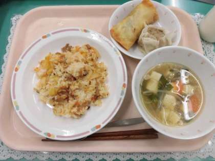 今日はセレクト給食でした。春巻きかしゅうまいを選んでいただきました。