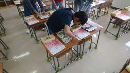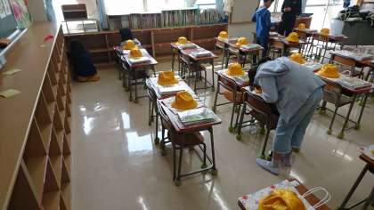 各教室の移動を手伝った後、6年生は入学式の準備をしました。(4月5日)