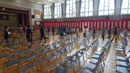 玉堤小学校の最高学年となりました。入学式当日は、1年生を教室から体育館へエスコートします。今日は、最後の練習をしました。(4月5日)