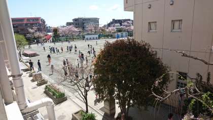 中休みが終わるチャイムを聞いた子ども達は、足早に校舎に入ってきました。一人一人が時間を意識した行動を心がけようとしています。(4月9日)