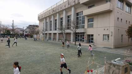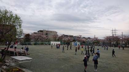 昨日の暖かさとは変わり、どんよりとした空模様でした。でも、中休みになると元気な声が校庭から響き渡ってきました。(4月12日)