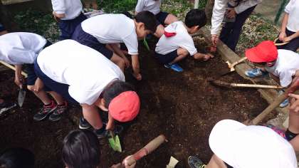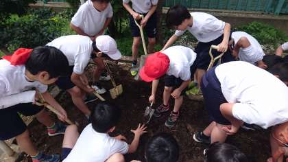 ヘチマの土作り(4年生)