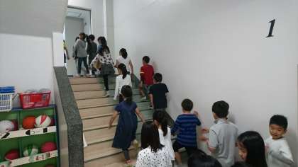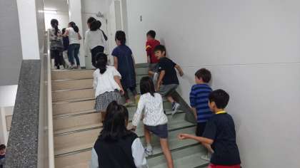 教室への移動では、しっかりと右側通行を守っています。(4月24日)