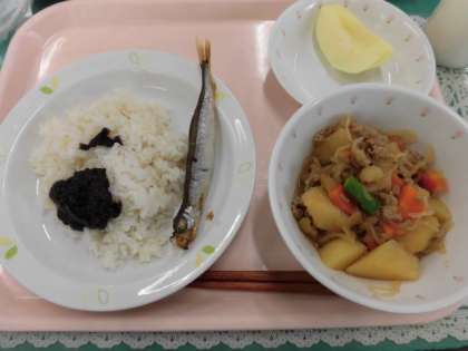 主な食材産地 米(青森県)ぶた肉(千葉県)ししゃも(ノルウェー)玉ねぎ(北海道)にんじん(徳島県)じゃがいも(鹿児島県)いんげん(沖縄県)りんご(青森県)