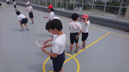 最近、植物が色とりどりの花を咲かせたり、虫をよく目にするようになった要因として、気温の変化が関係しているのではないかという予想をたてました。そこで、気温に着目した子ども達は1日の気温を記録しはじめました。(5月9日)