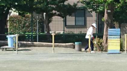 毎朝、主事さんが学校の清掃をして子ども達が気持ちよく過ごせるようにしています。(5月16日)