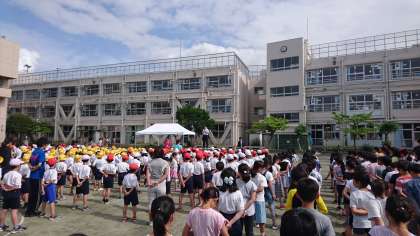 今日は、校庭で朝会がありました。久しぶりの朝会でしたが、マイクの調子が悪くて使えなくても静かに話を聞いていました。(5月20日)