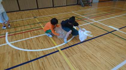 目に見ることのできない空気の性質を探るため、ビニール袋に空気を入れて手応えを感じ取っていました。子ども達は、空気で満たされたビニール袋を押すとへこむことが不思議に思い始めました。次回は、その疑問を課題として、一人一人の予想を確かめる実験方法を考えていきます。(5月24日)