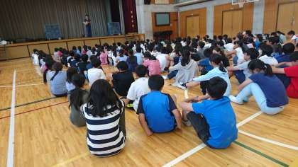 明日の運動会のために、5・6年生が運動会準備の手伝いをしました。体育館で仕事の内容を聞いた後、活動が始まりました。(5月24日)