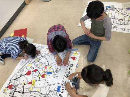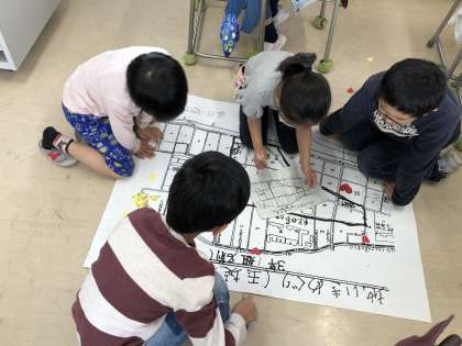 今日は各グループに分かれて安全マップを作成しました。(5月9日)