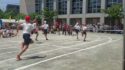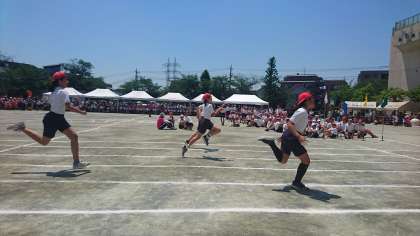 最高学年の力強い走りで見応えがあります。力一杯走り抜ける6年生でした。(5月25日)