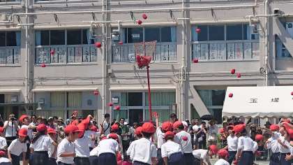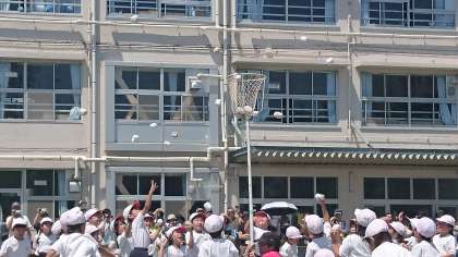 NHK2020応援ソング「パプリカ」の曲に合わせてかわいく踊り、玉入れをしました。(5月25日)