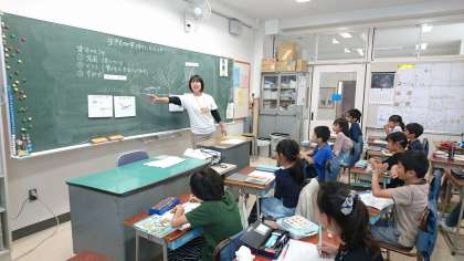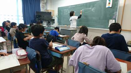 たくさんの生き物が玉堤小学校に来られるように、ビオトープを整備していきます。今日は、ビオトープ専門のゲストティーチャーの方にビオトープの作り方を教えてもらいました。(6月11日)