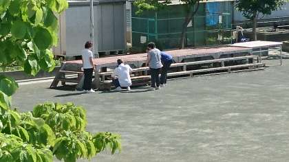 老朽化して危険なため、主事さんが撤去の準備をしていました。(6月13日)