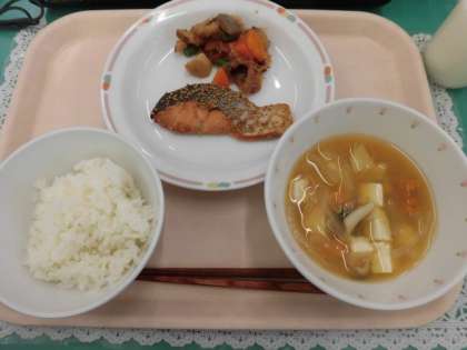 主な食材産地 米(千葉県)鮭(北海道)こんにゃく(群馬県)にんじん(徳島県)いんげん(鹿児島県)玉ねぎ(兵庫県)じゃがいも(鹿児島県)かぼちゃ(鹿児島県)しめじ(長野県)長ネギ(埼玉県)