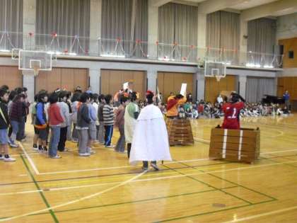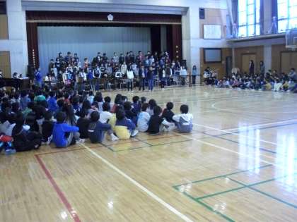 5年生は、卒業する6年生に、希望や勇気、友情などの大切さを贈りました。