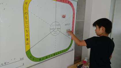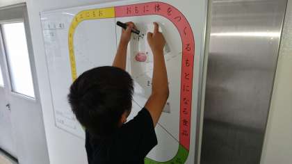 明日の献立を見て、掲示板に貼り付けていました。(6月27日)