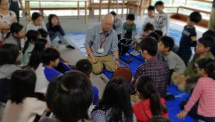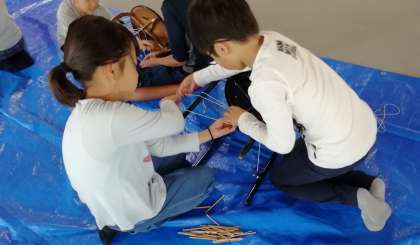 部屋でのんびりした後は、体験プログラムに挑戦です。。「茅葺き屋根の茅を使ったコースターづくり」「わら縄づくり」の2グループに分かれて作業をします。