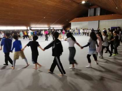 定番中の定番!マイムマイムです。全員が大きなひとつの輪になり盛り上がってきました。