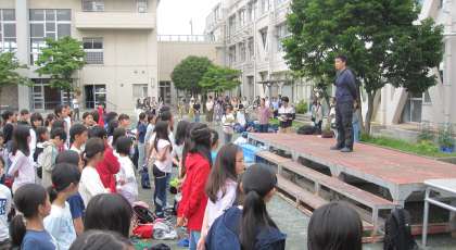 予定よりも30分程早く到着しました。お出迎えをいただいた保護者の皆様、ありがとうございました。帰校式を行い、川場移動教室すべての行程を終えました。最後に3日間お世話になった支援員さんや看護師さんからも言葉をいただきました。5年生の子供たちにとっては、この3日間は一生の宝物になったこどでしょう。