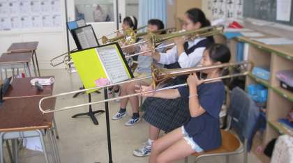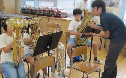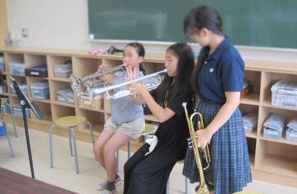 7月6日(土)「翠と溪の学び舎」の活動の一環として、本校合奏クラブは、尾山台中学校吹奏楽部の先輩方からアドバイスをいただきながら練習をしました。
