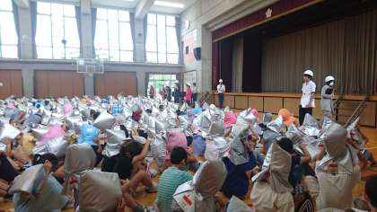 今日の避難訓練は、3年生と5年生が煙中体験をしました。(7月8日)