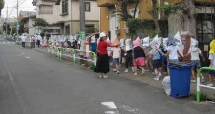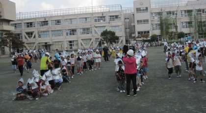 地震発生、津波による多摩川氾濫を想定した避難訓練を実施しました。校庭に集合してから、第2次避難場所の高台へ避難しました。訓練後、教室で東京防災「防災ノート」を活用した授業を行いました。