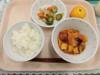 主な食材産地 米(青森県)ぶた肉(千葉県)しょうが(高知県)じゃがいも(北海道)にんにく(青森県)にんじん(北海道)ピーマン(茨城県)赤ピーマン(山形県)黄ピーマン(山形県)玉ねぎ(北海道)大根(北海道)れんこん(茨城県)きゅうり(埼玉県)